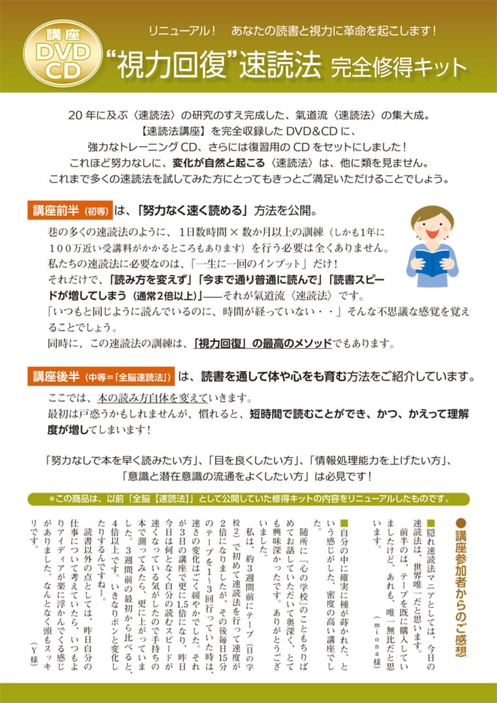 DVD・CD「“ 視力回復 ” 速読法完全修得キット」「読書講座」セット