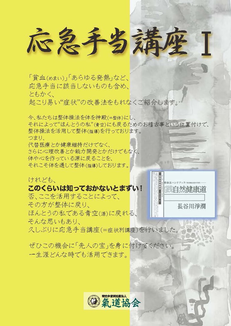 整体法のバイブル青本(「実践自然健康道」)の「応急手当」に沿って、その中で活用頻度が高いものをご紹介します。