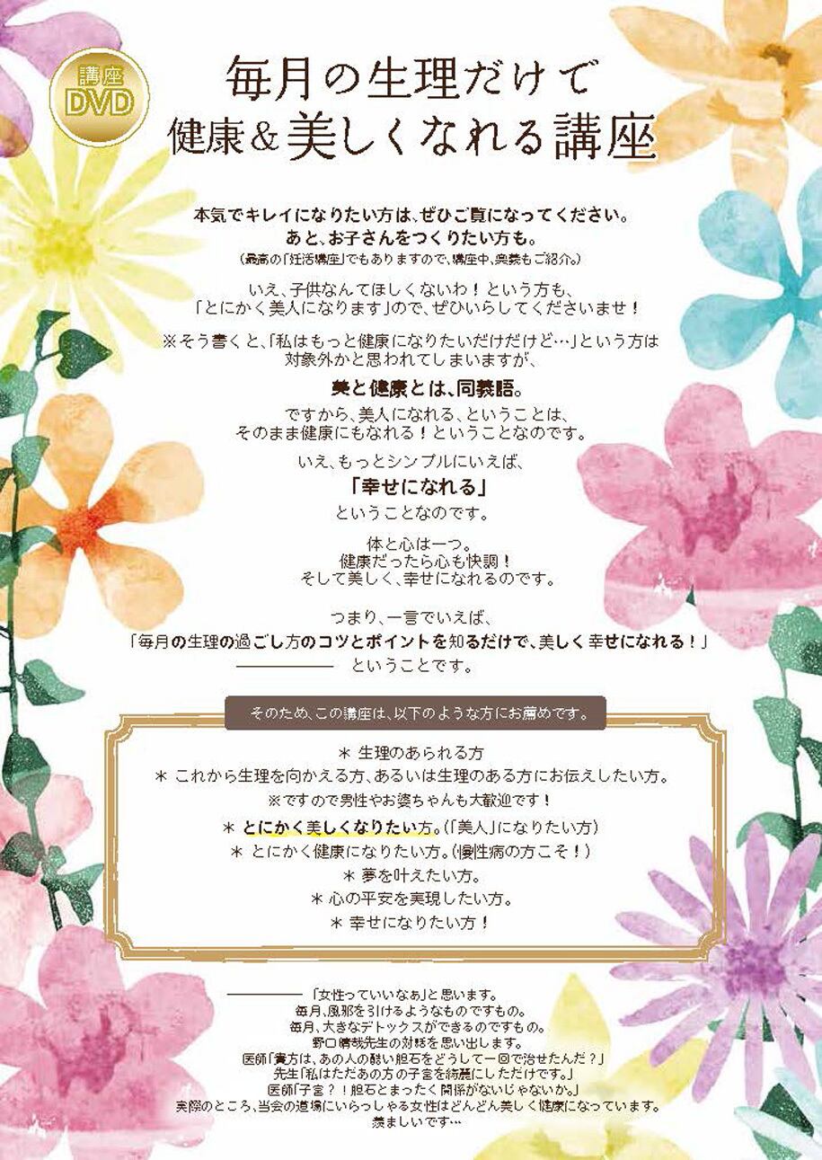 DVD/CD・データ「毎月の生理だけで 健康&美しくなれる講座」